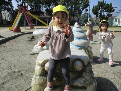 笑顔いっぱい戸外遊び(⌒∇⌒)(1歳児だいちチーム)